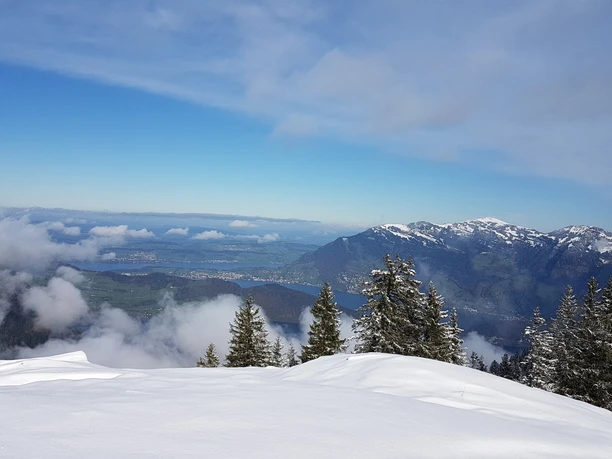 Diese abwechslungsreiche Schneeschuhwanderung führt Sie von der Bergstation Klewenalp hinab zum Wangiboden (Talstation Sesselbahn Klewenstock). Von dort führt der Weg zum Aussichtspunkt Brämegg, welcher Ihnen einen atemberaubenden 360 Grad Blick auf die umliegende Zentralschweizer Bergwelt und den tiefblauen Vierwaldstättersee gewährt. Der Platz bietet Ihnen die ideale Möglichkeit für eine kurze Verschnaufpause bevor der letzte Anstieg zum Naturfreundehaus Röthen ansteht (Öffnungszeiten unter www.klewenalp.ch). Das letzte Stück zurück zur Bergstation Klewenalp lässt sich bequem auf dem Winterwanderweg begehen.